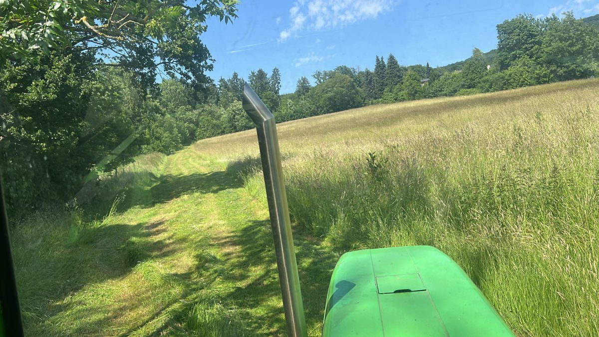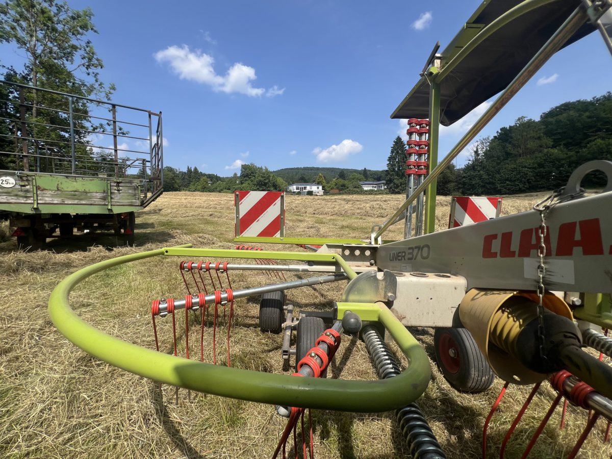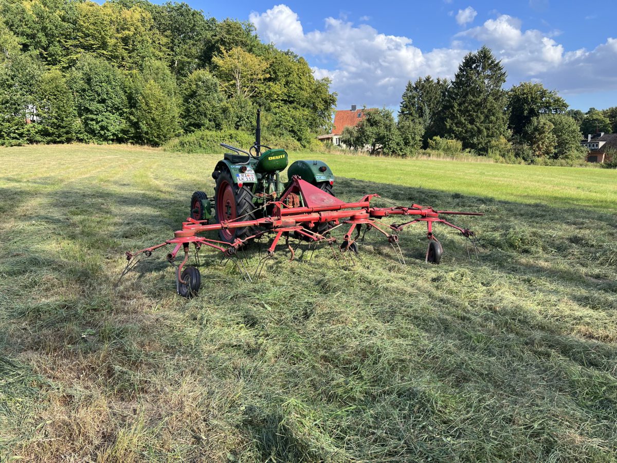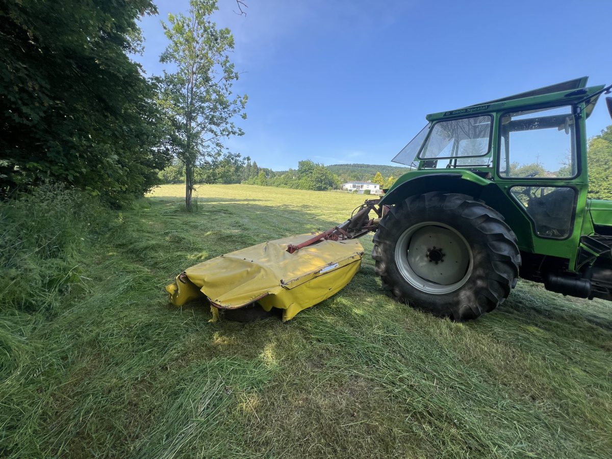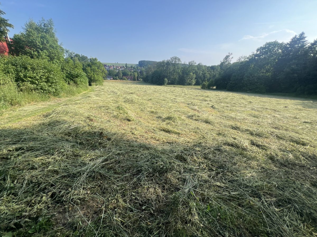Anfang Juni war es wieder soweit: Die Heuernte stand vor der Tür. Aufgrund unserer zwei Flächen war es eine besondere Herausforderung, da eine Wiese aktuell 12 km entfernt liegt. Dadurch musste eine Strategie entwickelt werden, um die begrenzte Tageszeit optimal zu nutzen.