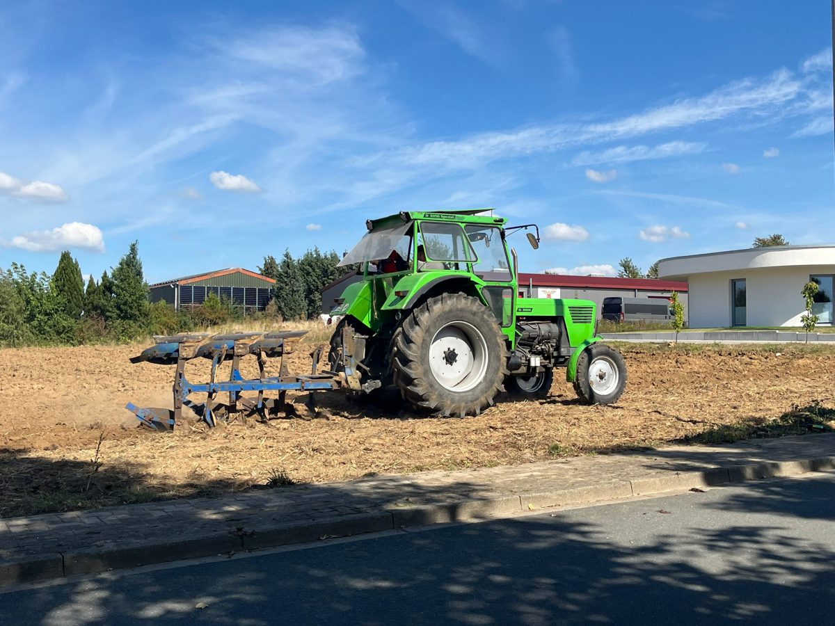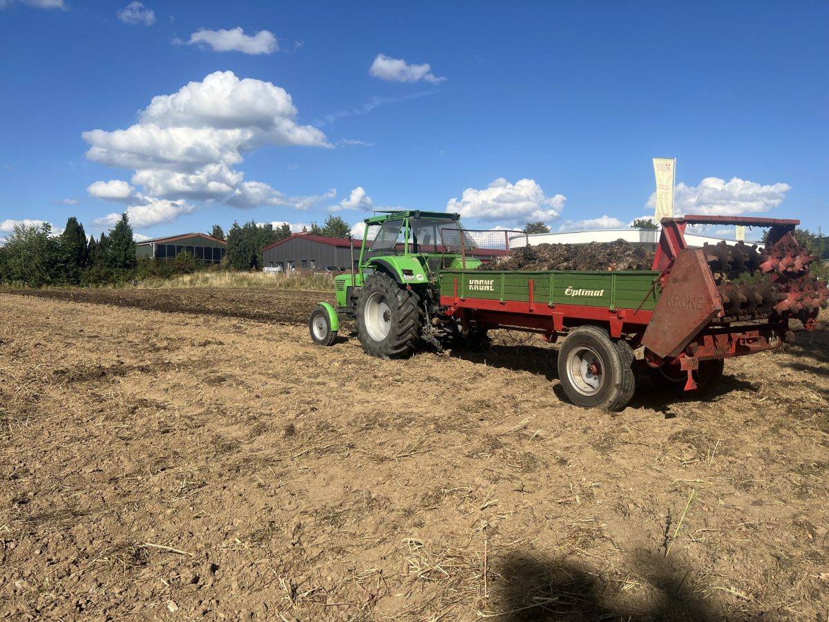 Nach der Strohernte beginnt für uns die Ausbringung des Mistes, der das ganze Jahr über auf dem Hof anfällt. Der Mist wird aktuell zu den Treckerfreunden Rodenberg auf den Vereinsacker gebracht. Anschließend wird alles untergepflügt, um eine Geruchsausbreitung zu vermeiden.